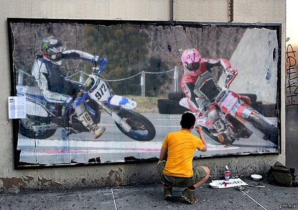 赤いバイクの人はプロなんですよー