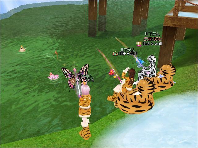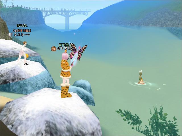 お昼、MILU神社鳥居横でミルとものミルリーフさんと釣りをしたわ。