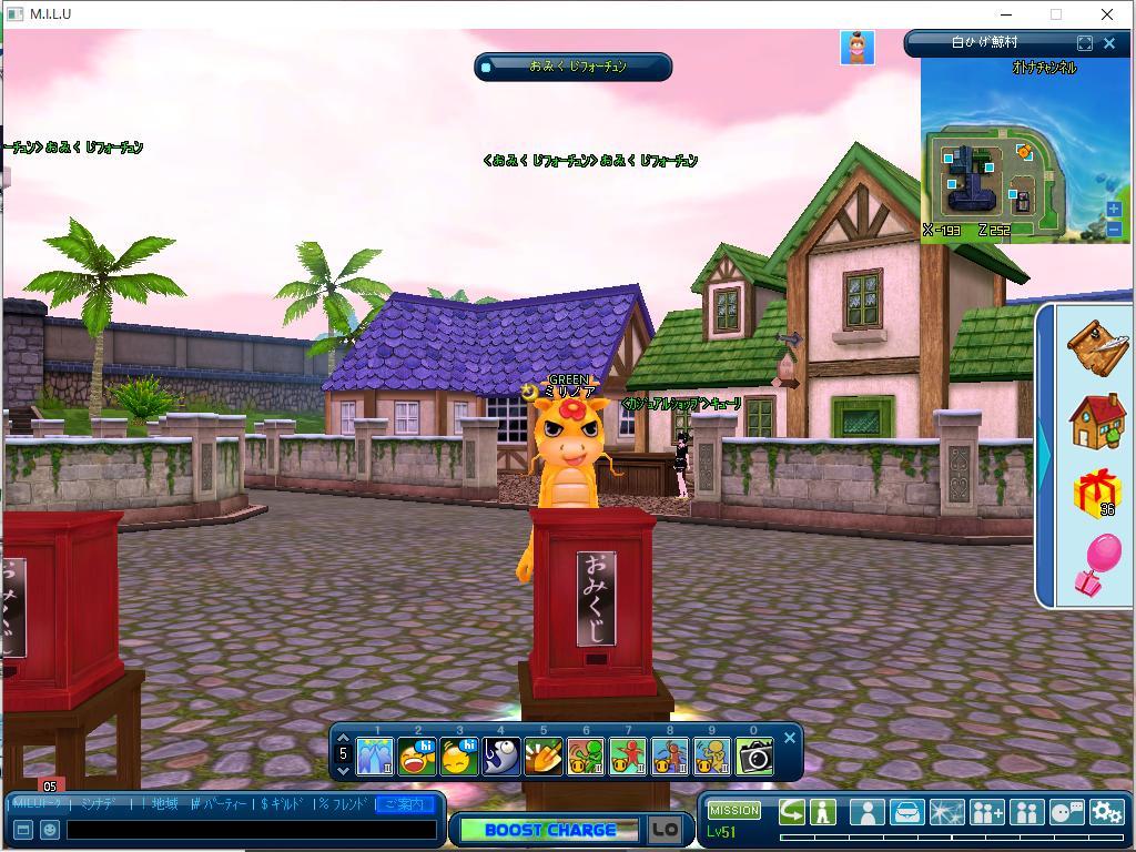 おみくじをひいたら・・・金のたつさんになってしまいました。うにゃー。。でもでもいべつり30と、残っていた50匹釣りのクエストやったらたのしくなって(≧∇≦)