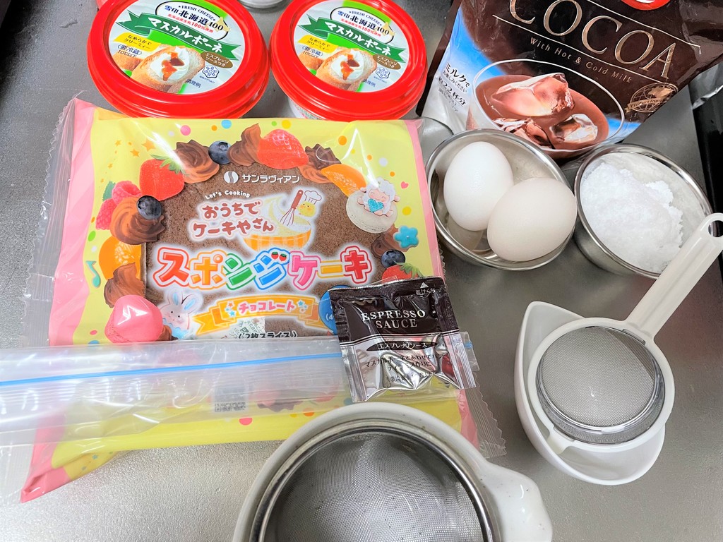材料と道具 卵、マスカルポーネ、砂糖、