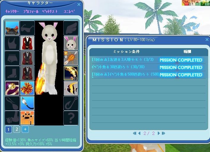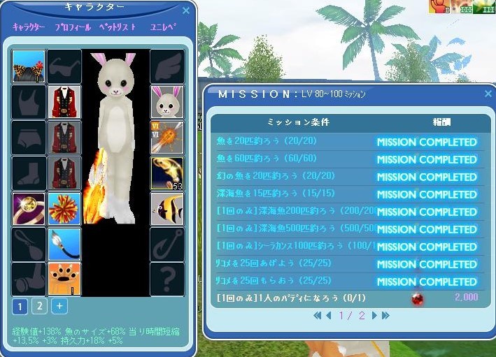 ミッション一部はぶきコンプするほど釣ったのとペットと魔法で1日1%