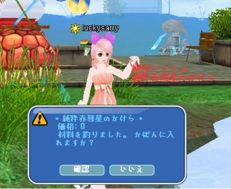それでは、今回の釣果の発表です^^ 青銅貨 19 カード 8 銀カケ 2 銀貨 1 もろかけ 11 結晶 10 純パ 3 純かけ 1 一般魚 43 カッパ 1 相変わらず魚率が高いけど 銀貨と純カケが釣れたので良しとします^^