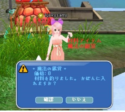 さっそくダイヤモンド錨餌で材料釣り開始^^ 前回は釣れなかった銀貨が来た~っ