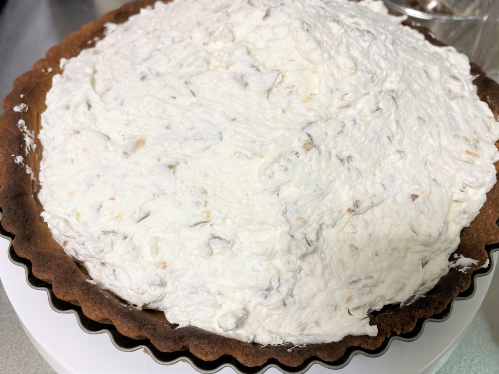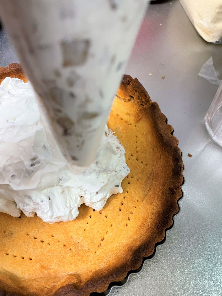 2日目。タルトの上の一層目の栗ホイップ作り。