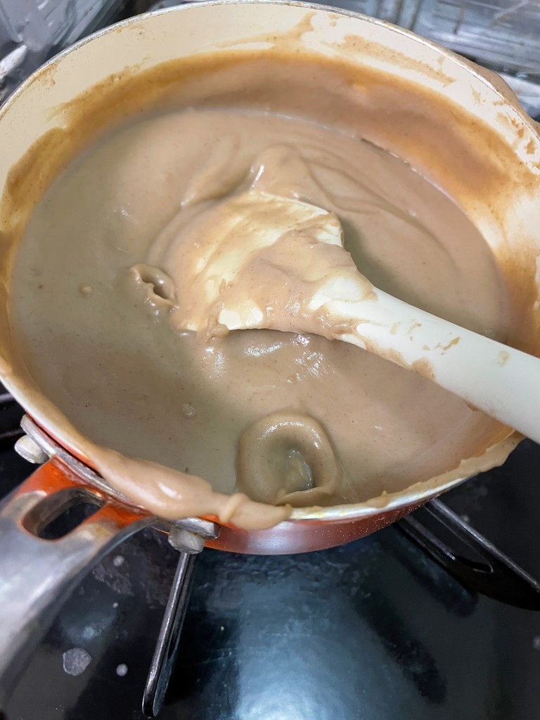 牛乳、砂糖、栗をミキサーで混ぜ、程よい固さになるまで火にかけ、