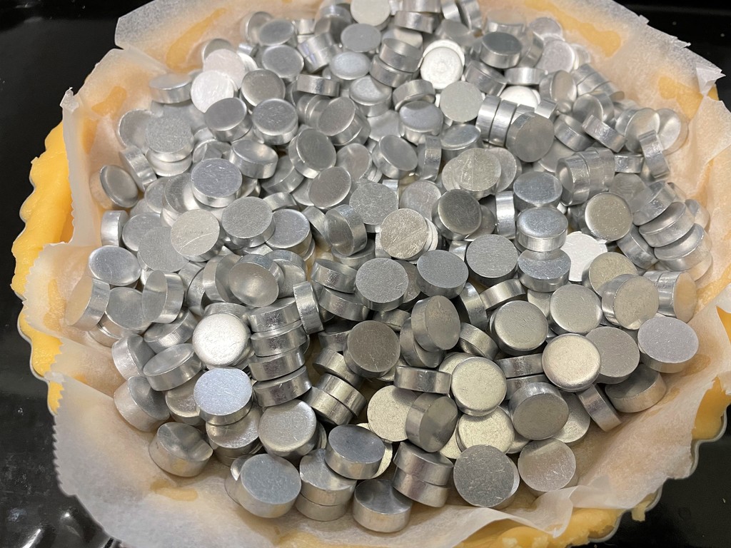 タルトストーン入れて焼きます。