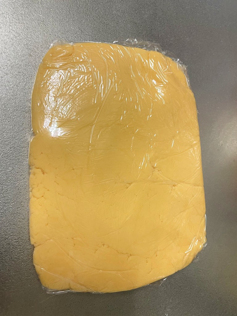 小麦粉、卵黄、粉砂糖、アーモンドプードルで生地作り。