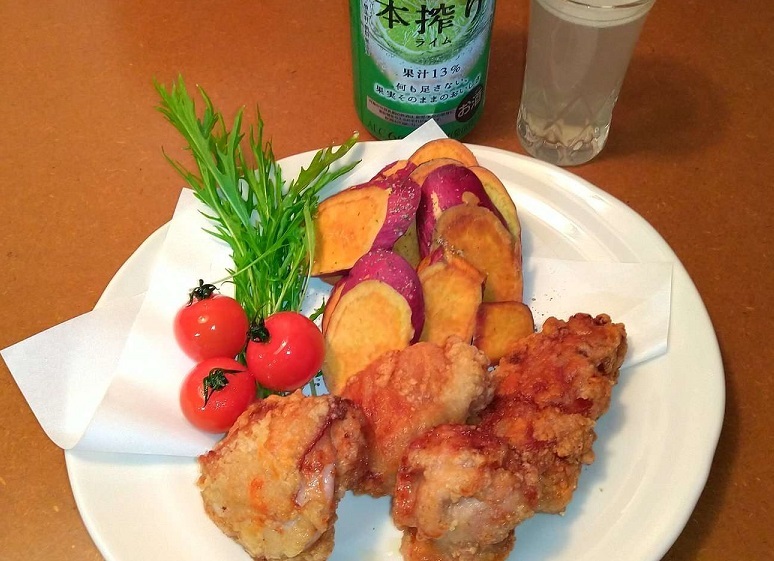 付け合わせ? 主食は、さつまいもの素揚げです! コレも美味い☆彡