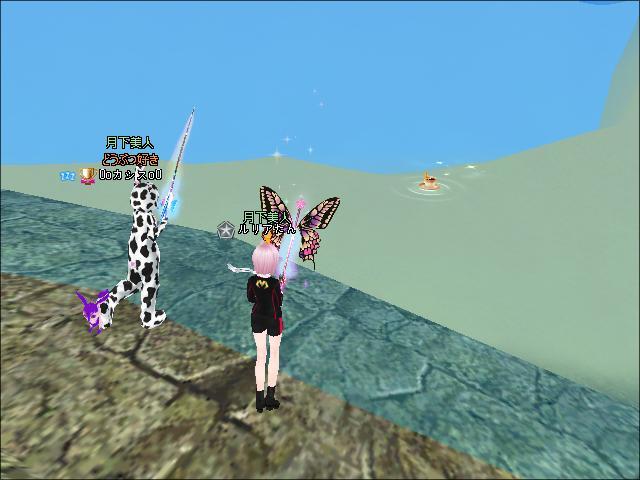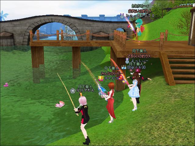 夜、3鯖ピシュル横でギルメンさんたちと釣りをしたわ。