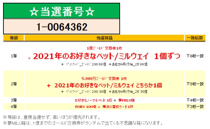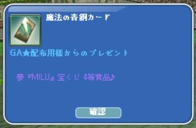 夢MILU宝くじの4等が当選してました^^