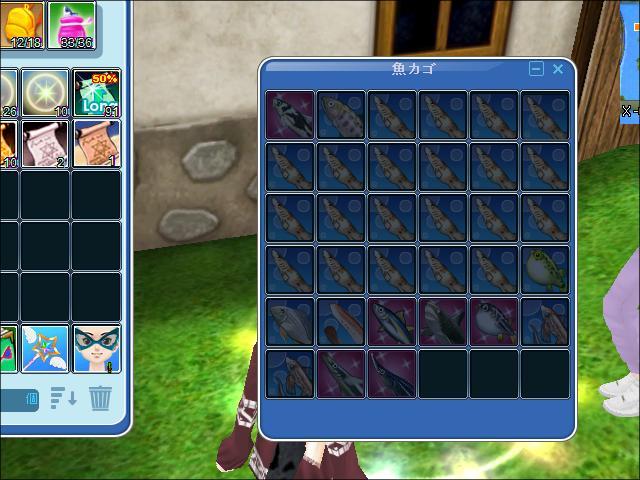 落ちる時間になって魚を処分しようとしたら、こんな風に魚籠の中身がまっ黒になり処分する事が出来なくなりました@@サーバーを変えてみても処分出来なかったです><明日直っているといいけど@@