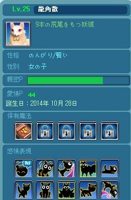 ペットのレべアップです^^ 昨日、龍角散がLv25に!