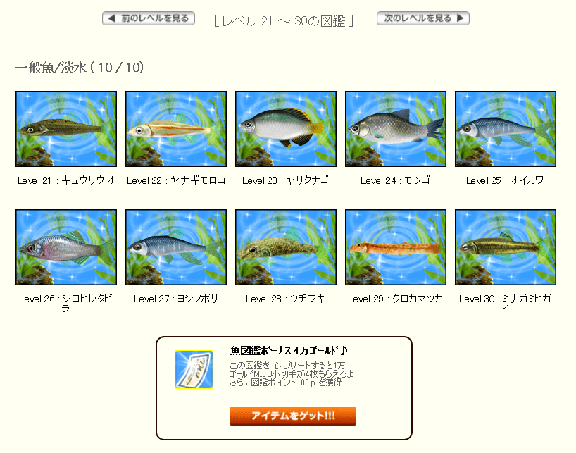 | お魚図鑑完成☆. .。.:*@゚★オメデトウ★゚@*:.。. .☆ |