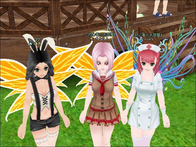 バニーちゃんとナースに挟まれてパシャリ☆+。