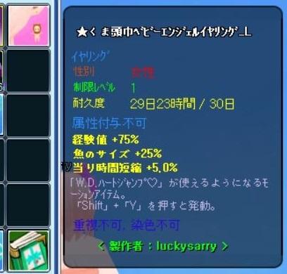 凄い高属性イヤリングです^^ ただし、M… ……。 でも、待てよ… もしかして性別変更とかできるかも。 シャシャで確認してみると