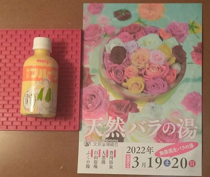 肝心の薔薇の湯ですが、写真通りってか写真以上色数の多い、茎のついたバラの花がごろごろ浮いてて