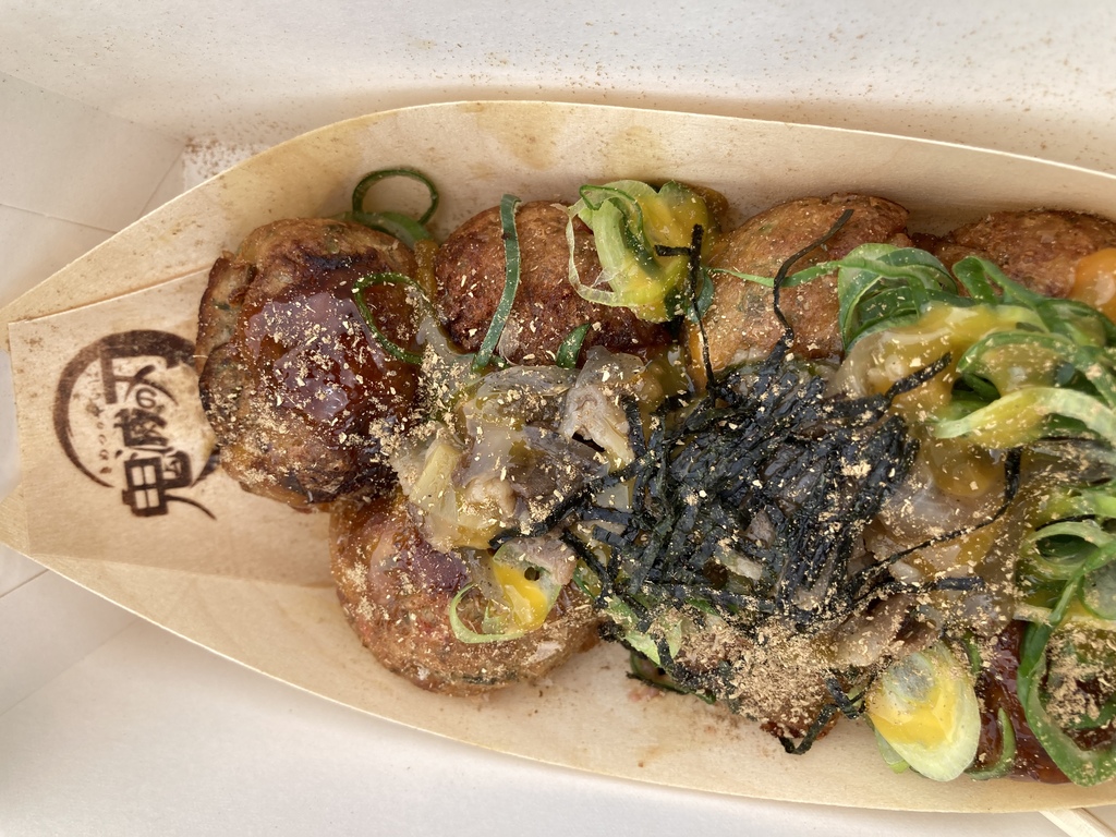 今日は銀だこで 「炭治郎のすき焼き味たこ焼き」食べたよ。 ネギたっぷりで山椒かけて食べるあたり ちょっと大人向きだよね。 ちなみ桜の木の下でいただきました。 ちょっとだけ花見