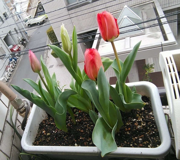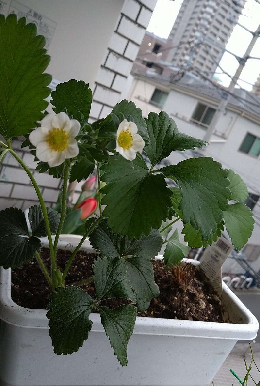 チューリップとイチゴが咲いた( ̄ー+ ̄)キラーン