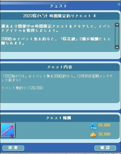 朝、残りを頑張って時限クエだけは終わらせたいな