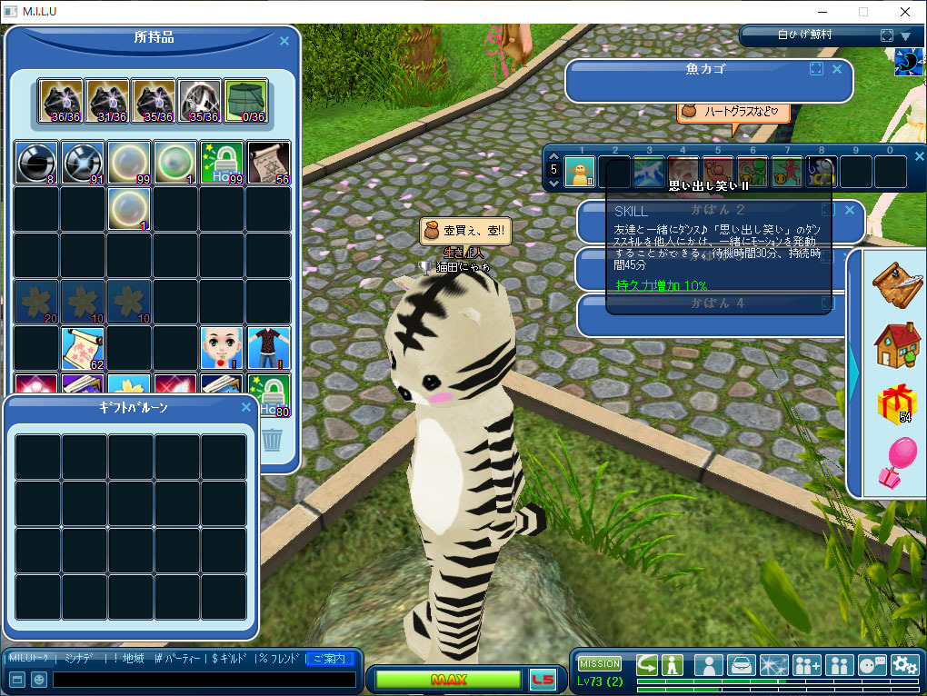 お前だな!!生徒に余計な手間を掛けさせている元凶は。なにが教授だよwスカした顔しやがってw歌舞伎町のホストかよwwいや、知らんけど。まぁ、今日はこれぐらいにしてやるわ。これから毎日毒づいてやるんだからな!!覚悟しておけよ!!というわけで・・・・1日目の習得魔法は 『思い出し笑い』効果は・・・よくわからんwwwモーションを同期させることに役立つのか、それとも、相手が覚えていないモーションでも、自分がモーションを使えば、相手もそのモーションと使えるのか・・・?どっちにしても、コミュニケーションを目的にしてるなら、クールタイム30分は長いよね。1分ぐらいでいいと思うし、他のまほー調べたわけじゃないから知らんけど、確か持久+10%って他にもあったはず。(ポーションがどうとかあるかもしれんけど、あーやっぱり、海の眼差しIIIに喰われてるね。)コミュニケーション特化なら、思いっきり特化させる。釣りに使うは魔法なら、その方向に特化させる。尖り方が中途半端な印象です。コミュニケーションを取ってる途中で、30分待てと・・・デザイナーさん、頭大丈夫?大阪の凄い人が言ったそうです。テンポと間やでにも関わらず30分待てと?ユーザーが楽しんでる途中で30分!!「これ面白かったでしょ!! じゃぁ次はコレ!!あーーーー、ごめん、30分待ってね!!」なんてことがコミュニケーションの場で有って良いと思って?こーいうのを センスがない って言います。釣り特化なら釣り特化。コミュニケーション特化ならコミュニケーション特化。メリハリ付けようね!!というワケで、ネコ様のお時間です。おやすみなさい(twitteからのひろいもの)さて、今日の毒・・・もとい『まっ黒な日記帳』・・・、ネコ様が浄化してくれたかな?1. 浄化できてます2. 浄化できてません3. いや、ネコ画像だけでいいよw