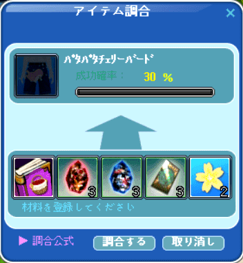 調合成功ヽ(*´∀`)ノ*.o゜+:,*オメデトデス*:,+゜o.*ヽ(´∀`*)ノ
