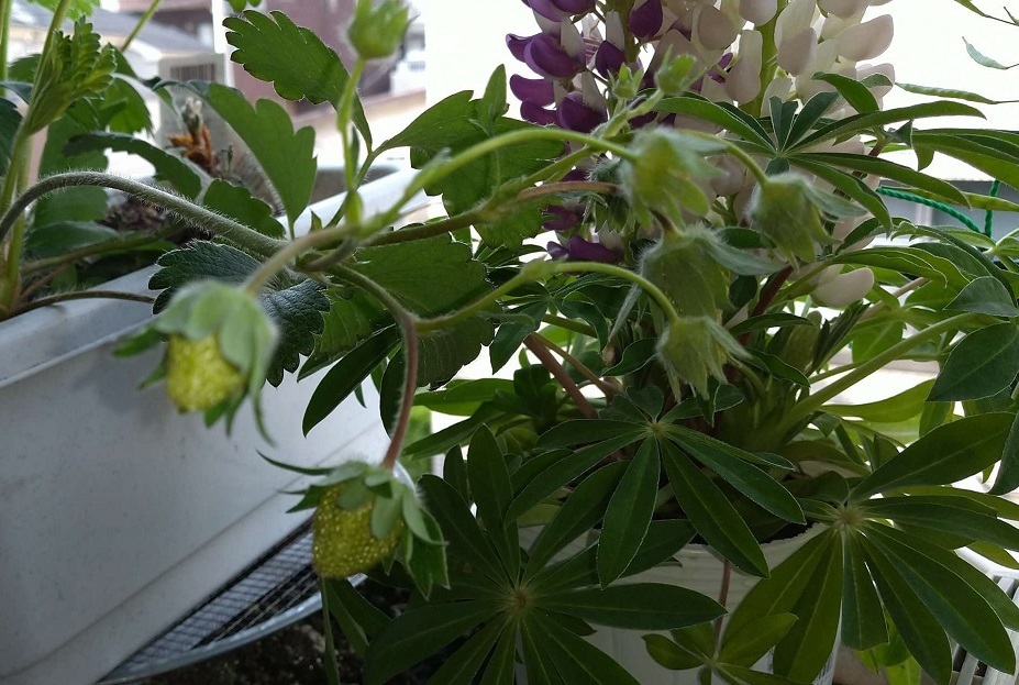 ウチのベランダイチゴも無事冬越えして、今こんな感じー