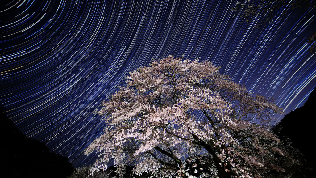 桜の木は90枚も重ねると風で揺れてぶれたようになってしまうので、見栄えのよかった1枚の写真を使ってくっきりさせてます。
