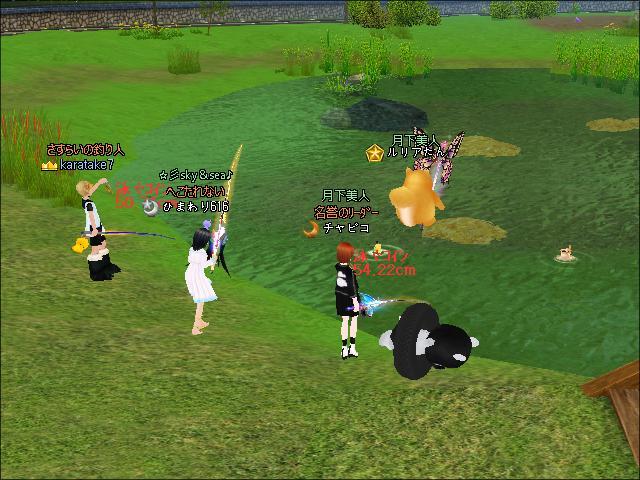夜、ギルメンさんたちと釣りをしたわ。