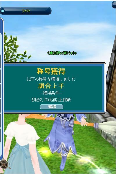 今日調合したら、「調合上手」という称号の表示が出ました^^所持品の整理していただけなんだけどね((´∀`))ケラケラまあ頂ける称号は、全て頂いておきますわ☆(ゝω・)vキャピww