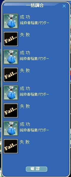 | 私も、調合確率、信じられないくらい悪かったです>< |