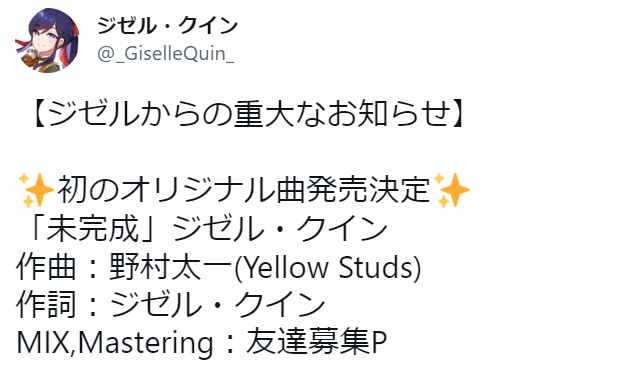 ジゼル・クインさんの初オリジナル曲がでたーーーーーーー