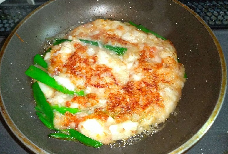長芋を棒でバチバチ叩いて、鰹節と昆布つゆ足して焼いて、ネギのっけ焼きにしたので