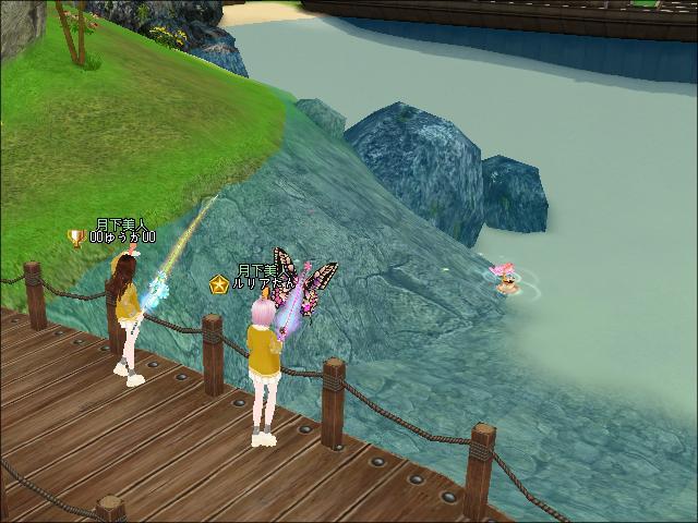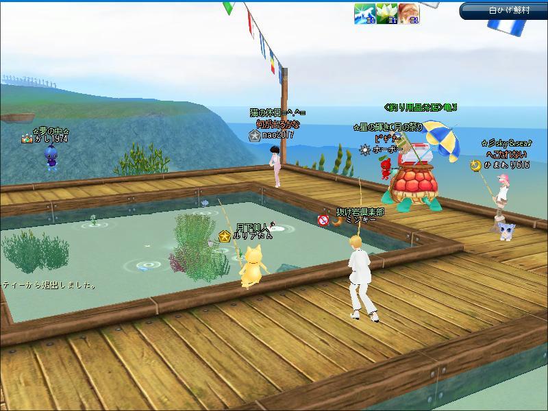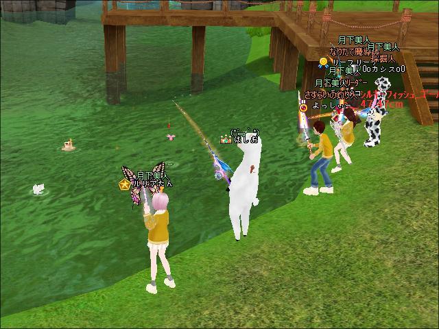 夜、3鯖ピシュル横でギルメンさんたちと釣りをしたわ。