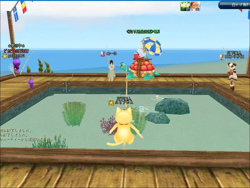 その後、3鯖ピシュル横でギルマスの00カシス00さんとイベント釣りをしたわ。