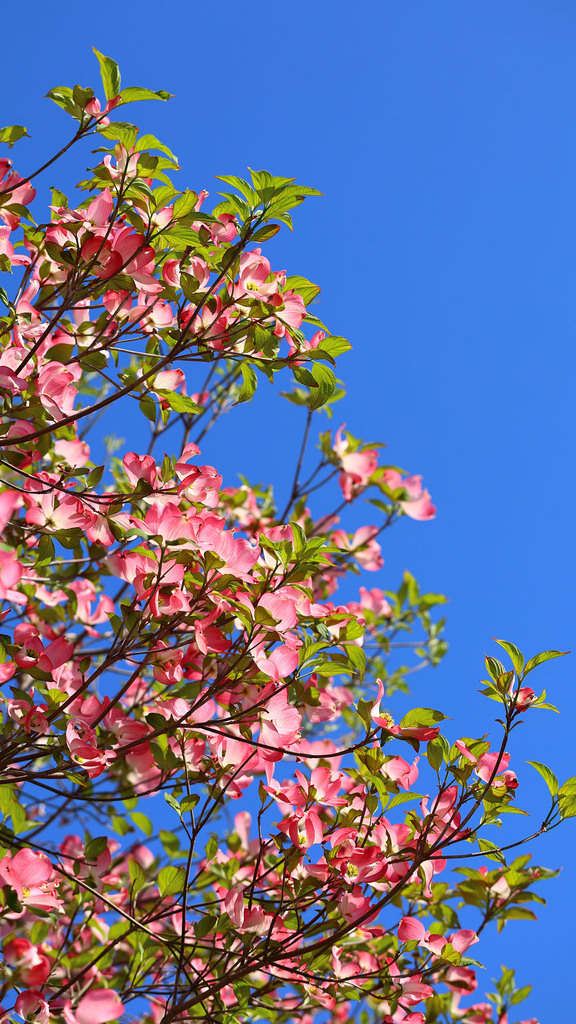 ハナミズキ、青空にくっきり映えて、すっごくきれいです^^ |
