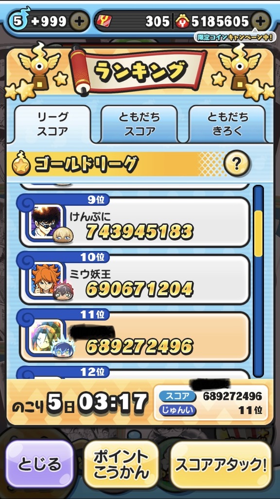 それと妖怪ウォッチぷにぷにでスコアタしてました。(゚∀゚)アヒャ