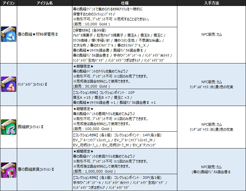 春の裁縫家具コレクションⅡはというと