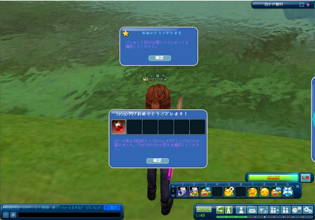 しばらく釣ってると今度はクエストクリア。重なるね~。。