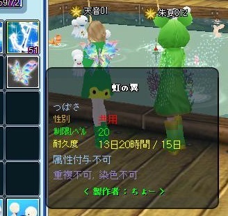 この羽は、夜サバで光る羽としては始めてやったんで、旦那様と一緒に作って交換したのだ(*´σー`)エヘヘ