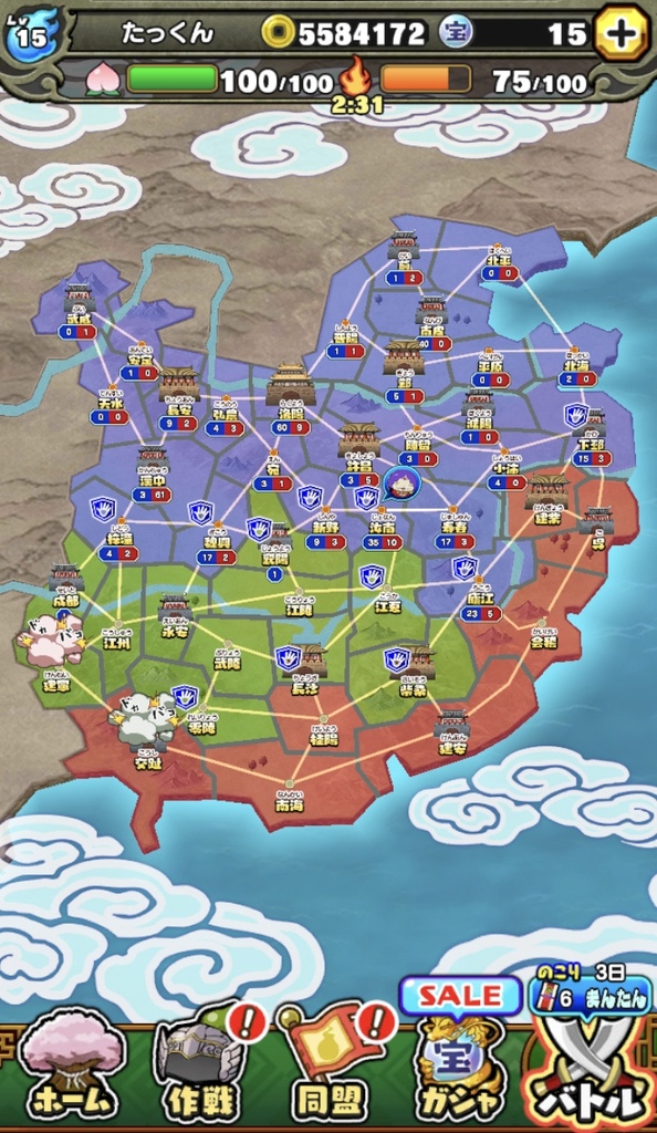 国盗りウォーズの方は、大分戦況が変わりました。