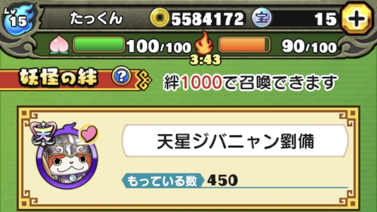 そして前言ってた天星ジバニャン劉備の絆は