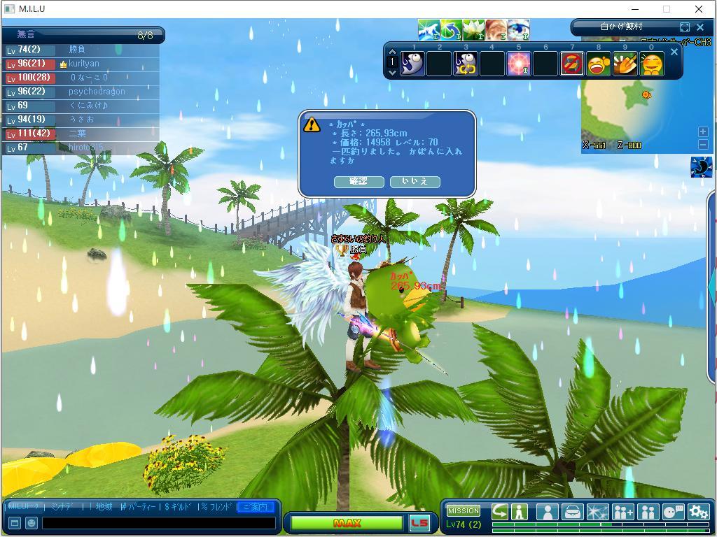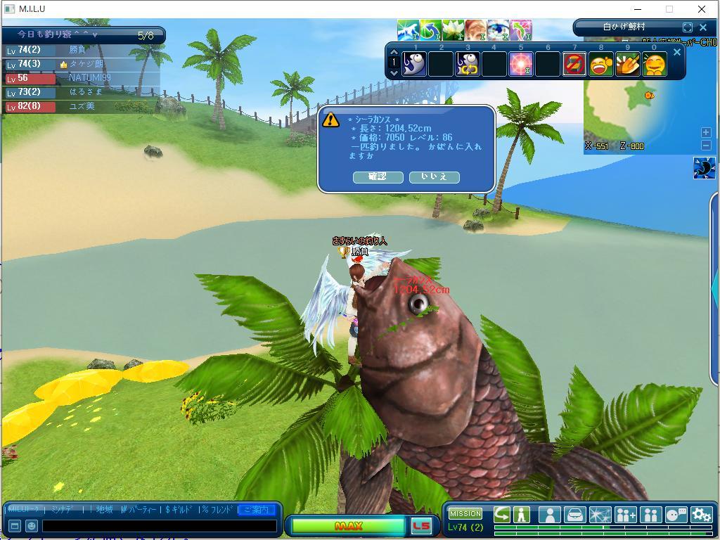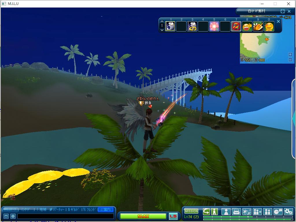 おおおお‥島が現れてて早速釣りして落ちるまで遊んでましたね