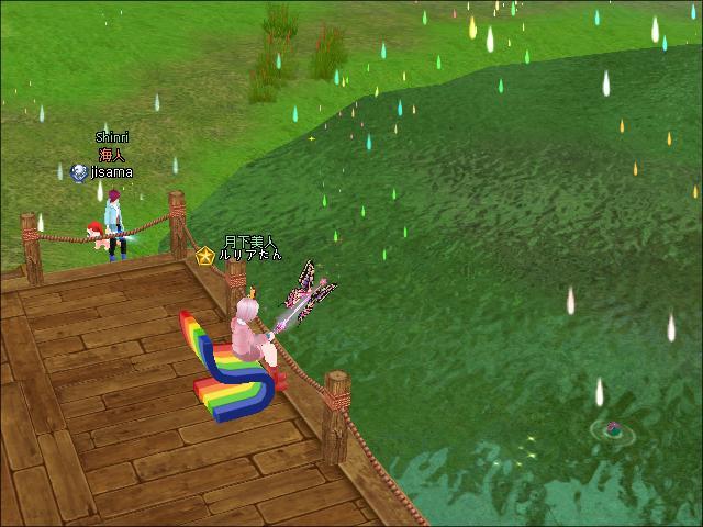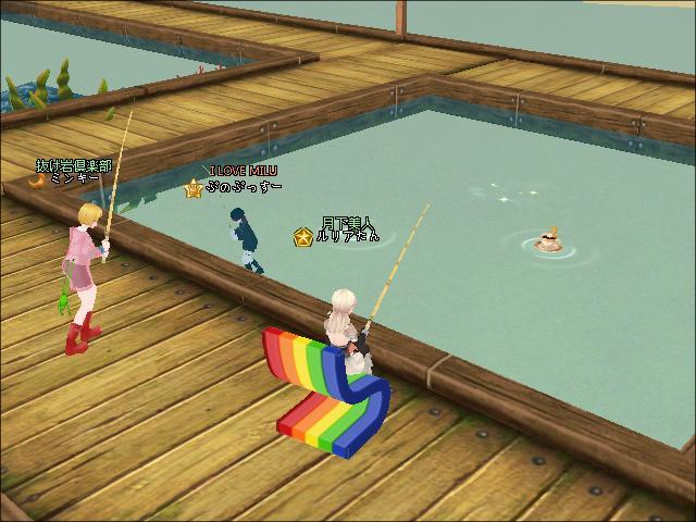 夜、3鯖ピシュル前でギルメンさんたちと釣りをしたわ。