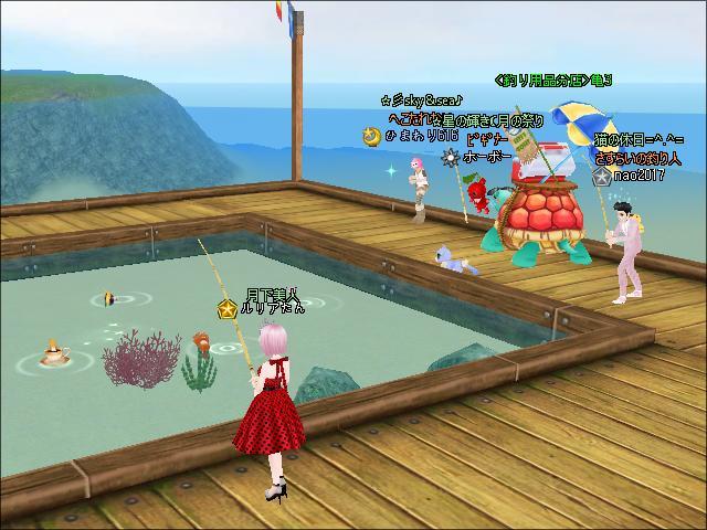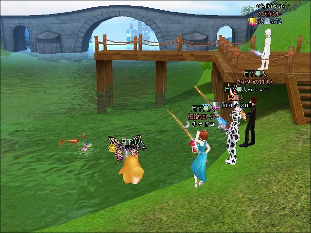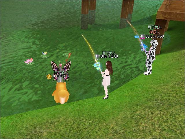 夜、朝と同じ場所でギルメンさんたちと釣りをしたわ。