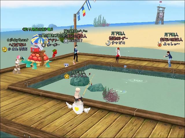夜、3鯖ピシュル横でギルメンのよっしぃーさんと釣りをしたわ。
