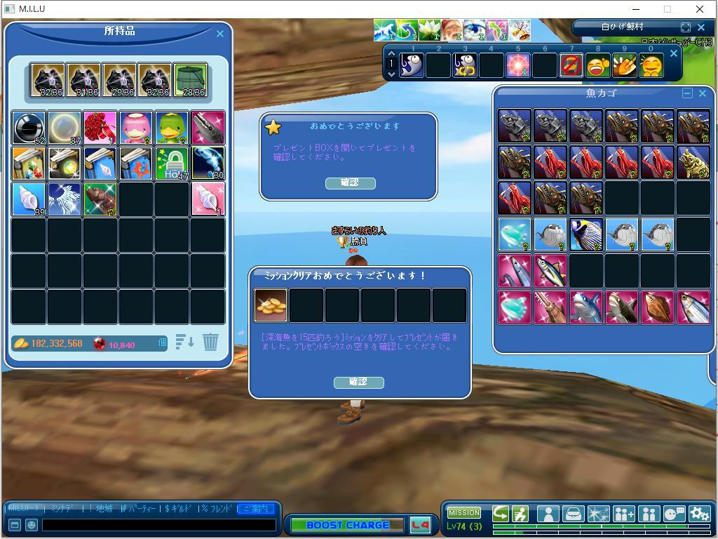 露店してると釣りできないのが難点ですね。私もまだペットレベルが20になってないのでペット露店できません(^^;