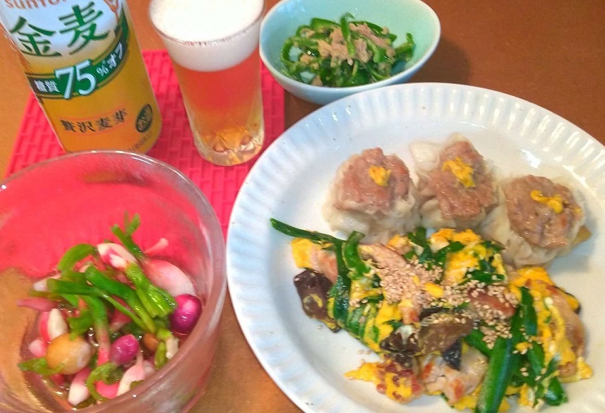 昨夜のご飯! 冷蔵庫と冷凍庫とベランダのありもの( ⑉¯ ꇴ ¯⑉ )