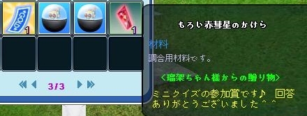遅くなりましたがフレさんのマイぺイベでのいただきものです^^
