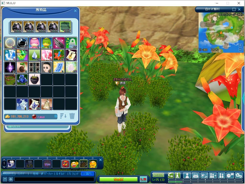 七色の花から白いバス?が出ました、耐久が1時間なので金のつるはしと