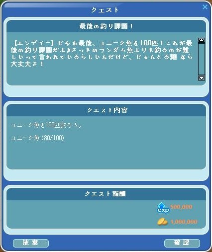 ユニーク魚100釣りのクエですが、80匹まで来ました ヽ(^o^)丿